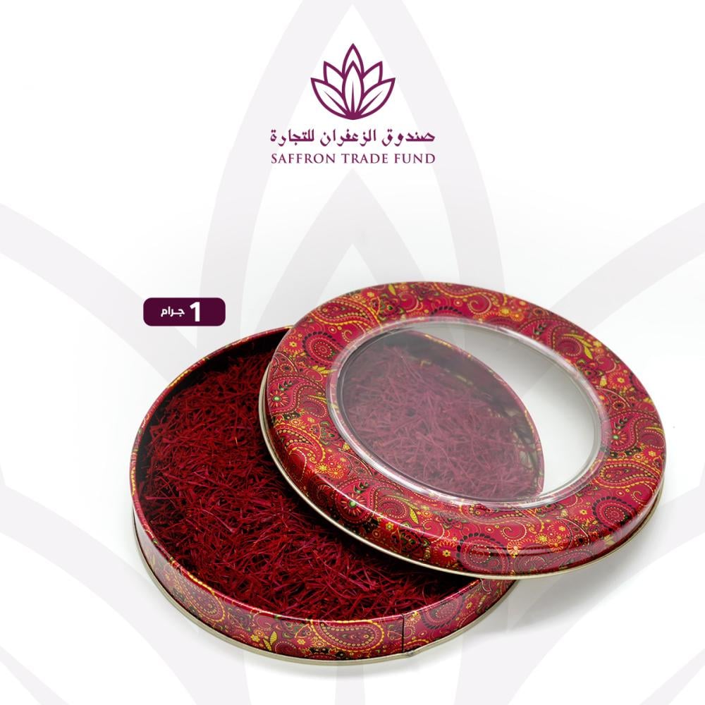 علبة فاخرة من زعفران سوبر نقيل وزن 1 جرام بتصميم يحافظ على المنتج من التلف.