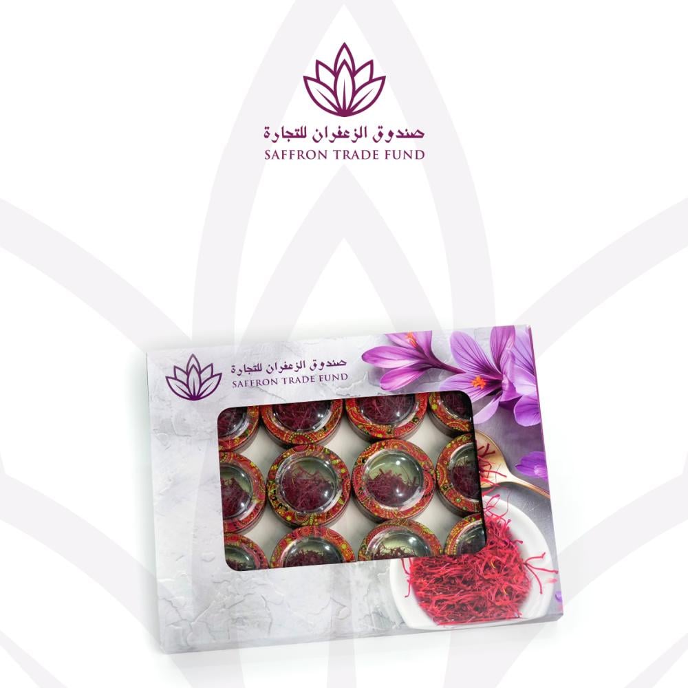 12 علبة فاخرة من زعفران سوبر نقيل وزن 1 جرام بتصميم يحافظ على المنتج من التلف.